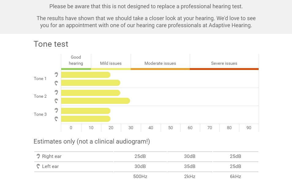 Please note that the Online Hearing Check can only serve as an indicator for hearing loss and cannot replace a full hearing test performed by a qualified clinician.